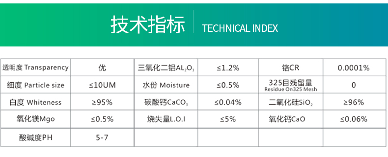 產(chǎn)品特點:透明度高、透明度、易于分散、低吸油量、穩(wěn)定性強。